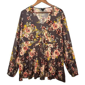Torrid Floral Crepe Rayon Babydoll Top Size 1X Multicolor Long Sleeve