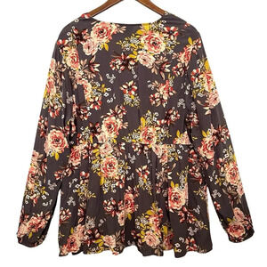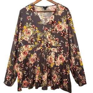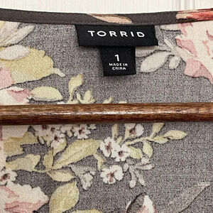 Torrid Top Womens Size 1X Multicolor Babydoll Rayon Crepe Floral Long Sleeve boho