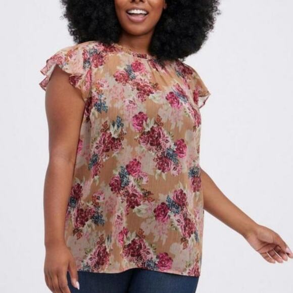 Torrid Floral Crinkle Chiffon Flutter Sleeve Blouse
