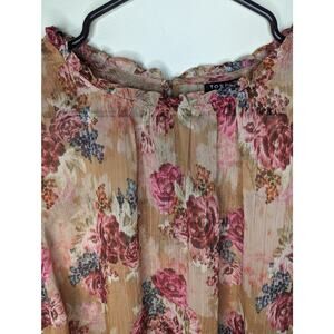 Torrid Floral Semi Sheer Crinkle Chiffon Flutter Sleeve Blouse. Has gold shimmer, buttoned keyhole in back.