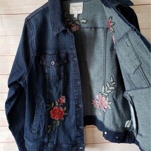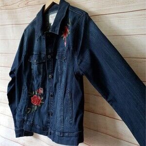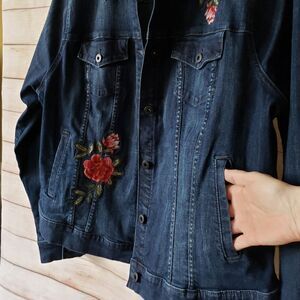 Torrid Floral Embroidered Button Front Denim Jean Jacket Pockets Women's Size 2