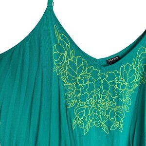 Torrid Floral Embroidered Green Tank Top Size 2 Adjustable Straps Vacation