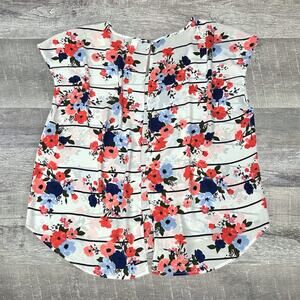 Torrid Womens Floral Striped Print Georgette Button Back Top