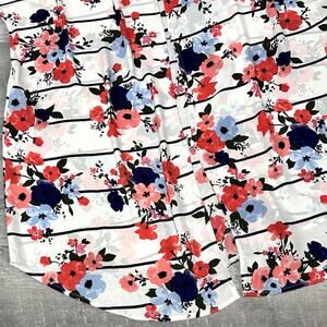 Torrid Floral Georgette Top Button Back Women Plus 3X Semi Sheer White Striped
