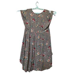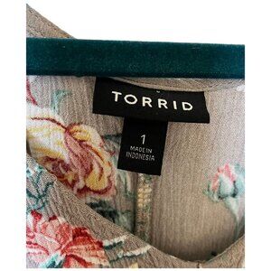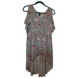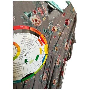 Torrid Floral High-Low Top Dress Size 1 100% Rayon Gray Red & Yellow Flowers