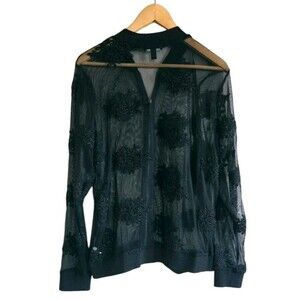 Torrid Floral Lace Jacket Women's Size 1 14/16 Black Sheer Full Zip