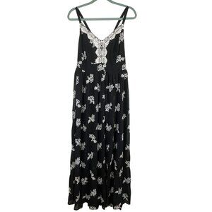 Torrid Floral Maxi Dress 1X Black Crochet Smock Retro Feminine Whimsical Classic