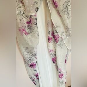 Elegant maxi dress with floral print. Features flutter sleeves and a v-neckline. Perfect for any occasion.