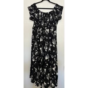Torrid Floral Midi Dress Plus Size 3 Black White Ruffles New