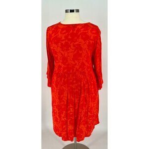 Boho meets bold in this fiery red and orange mini dress from Torrid! With its eye-catching lace-up neckline, subtle floral pattern, and playful tiered silhouette, this dress is made for effortless, free-spirited style. The soft, flowy fabric and ruffled sleeves add a touch of romance, making it perfect for brunch dates, festivals, or just twirling through your day in style.