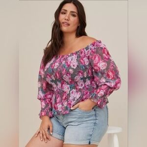 Torrid Floral Off-Shoulder Top - Pink And Grey