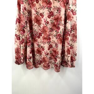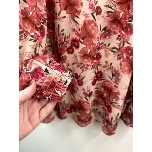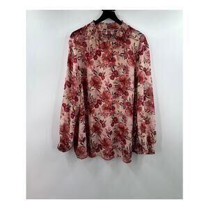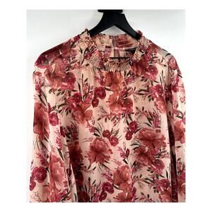 Torrid Floral Pink Chiffon Smocked Mock Neck Blouse Size 4
