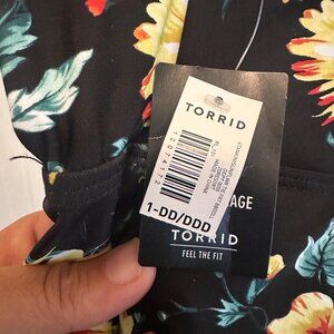 Torrid Floral Print Black & Yellow Swim Top Seperate With Bow Tie Front