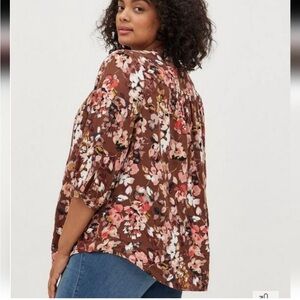 Torrid Floral Print Blouse in Brown and Pink Size 2