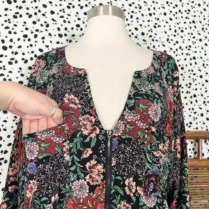 Torrid | Floral Print Plus Size Black Roll Tab Long Sleeve Pocket Zip Dress 4 4X