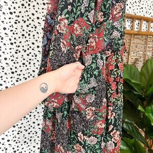 Torrid | Floral Print Plus Size Black Rust Green Roll Tab Long Sleeve Pocket Zip Dress 4 4X