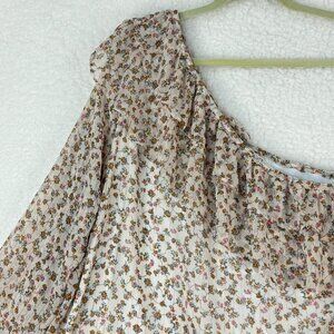 Torrid Floral Print Ruffled On-Shouler Top Womens Cream Chiffon Plus Size 2X