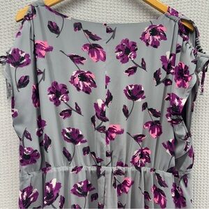 Torrid Floral Print Tie Sleeve Chiffon Skater Dress Plus Sz 2 Gray/Purple Mini