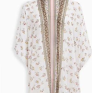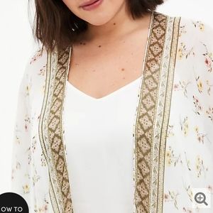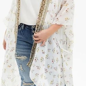 This ruana gives off major boho vibes with its wrap sleeves, floral print, and patterned border.