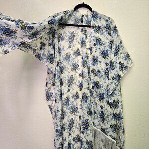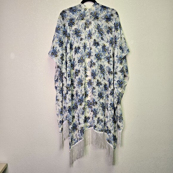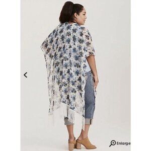 Torrid Floral Ruana Wrap Cardigan Fringe Hem Womens Sheer White Summer Spring Bo