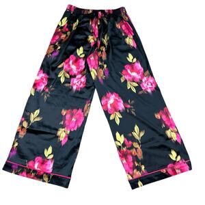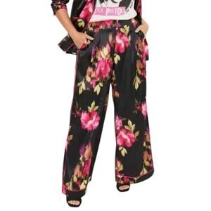 Torrid Floral Satin High Rise Wide Leg Pant Sz 00Tall Large Black Pink