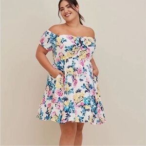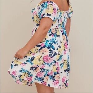 Torrid Floral Smocked Off Shoulder Milkmaid Croquette Girl Mini Dress Size 1X