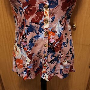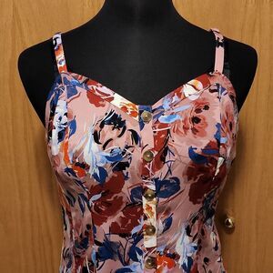 Pink Blush Floral print cami. Slightly stretchy, adjustable straps. Faux button down front. NWT Excellent condition!