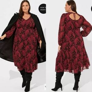 Torrid | Floral Tea Length Clip Dot Open Back A-Line Dress
