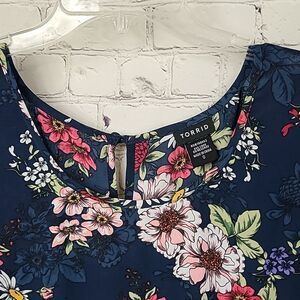 Torrid Floral Print Georgette Pleated Back Blouse Scoop Relaxed Fit Keyhole