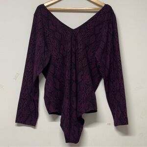 Torrid Foxy Double V-Neck Long Sleeve Bodysuit Black Snake 4X