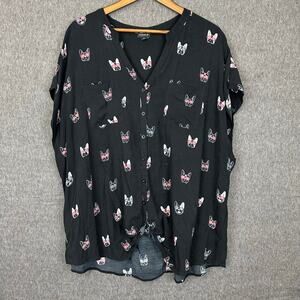 Torrid French Bulldog Print Rayon Button Up Blouse Sz 4X Lightweight Summer