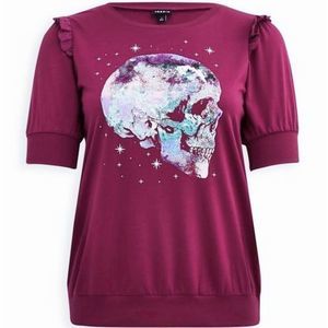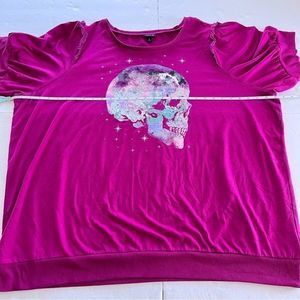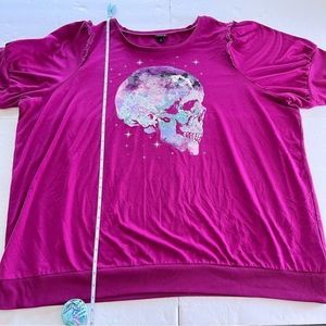 Torrid French Terry Short Sleeve Purple Skull Lightweight Sweatshirt 5X