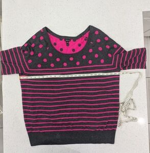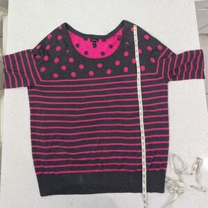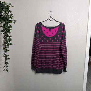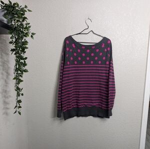 Torrid Fuchsia Gray Pilka Dot Striped Pullover Sweater Scoop Neck Long Sleeve 2X