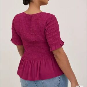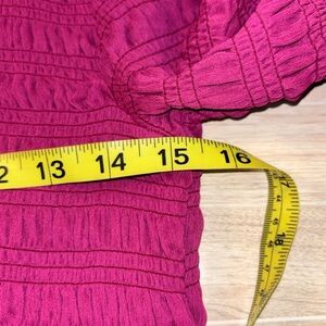 Stylish fuchsia blouse with smocked design. Comfortable and trendy for any occasion.