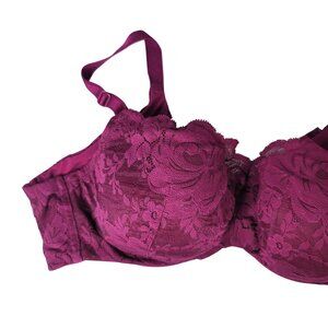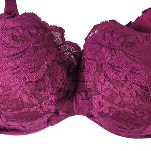Torrid Curve Purple Lace Overlay Floral Underwire Adjustable Strap Bra Light Padding Full Coverage Balconette Lightly Lined Exploded Floral Lace 360 Back Smoothing Bra