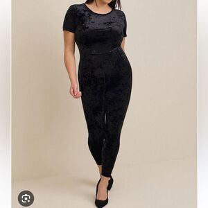 Torrid Full length crushed velvet black short sleeved catsuit size 3x