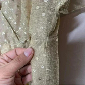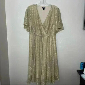 Torrid GOLD METALLIC POLKA DOT MESH WRAP DRESS Sz 0