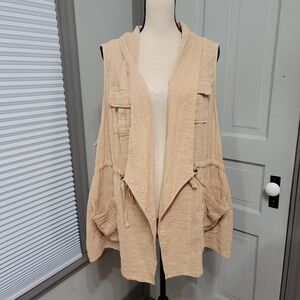 Featuring front pockets and a waist-nipping drawstring detail, this open-front vest has a soft drape that flatters your figure.