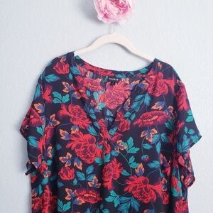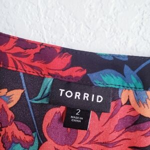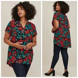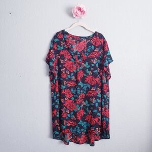 Torrid Georgette Black Red Floral V-neck Hi Lo Tunic Blouse