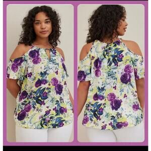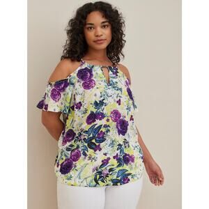 Torrid Georgette Chain-Link Cold-Shoulder Blouse • Floral White • Size 5XL