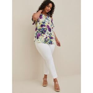 Delicate meets bold in this Torrid Georgette Chain-Link Cold-Shoulder Blouse in floral white, size 5XL. Crafted in lightweight georgette, this blouse features cutout cold shoulders and chain-link detail at the neckline for an elegant, airy look. Torrid’s georgette woven fabric is breathable and floaty.