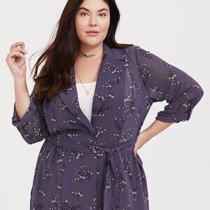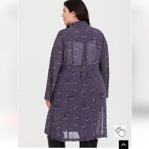 Torrid Georgette Chiffon Floral Grey Trench Waist Tie Coat Cardigan Duster Sz. 5 or 5X