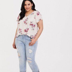Torrid Georgette Keyhole Floral Short Sleeve Blouse
