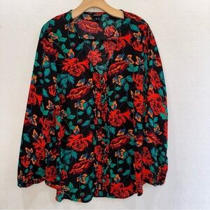 Torrid Georgette Pintuck Black, Red, Green Floral Long Sleeve Blouse Torrid 2