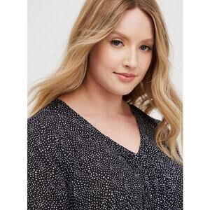 Torrid Georgette Pintuck Button Front Blouse in Black Dot Sz 2X Lightweight Top