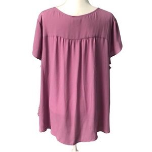 Beautiful Orchid (closer to a lilac lavender) Torrid Blouse. Sleeves have a cute tulip cross flap, split sleeve detail.