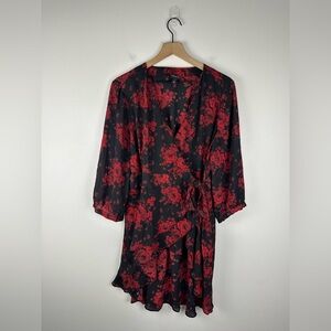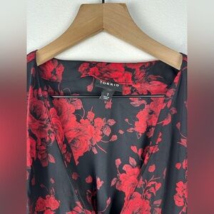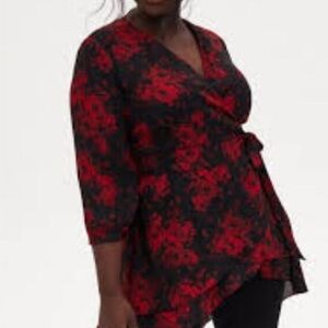 Torrid Georgette Wrap Tunic Blouse Red Roses Womens Plus Size 1X