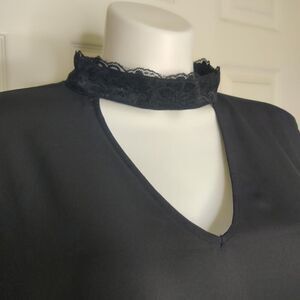 Torrid Georgette lace trimmed mock neck keyhole blouse sz 3