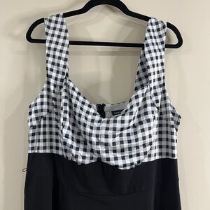 Torrid brand black and white gingham swing dress. Structured bust and A line skirt. Belt loops but does NOT come with a belt. Knee-length. Tag size 18. Underarm to underarm measurement is 21 inches. Total length from shoulder to hem is 39.5 inches. Brand new with tags!