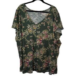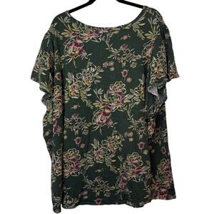 Torrid Girlfriend Heritage Slub V-Neck Flutter Sleeve Tee Size 6 Green Floral